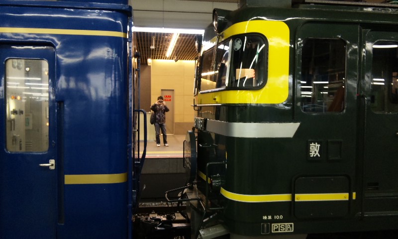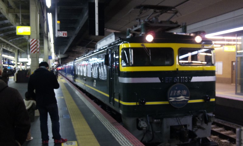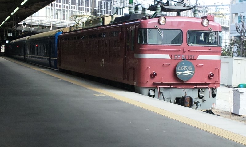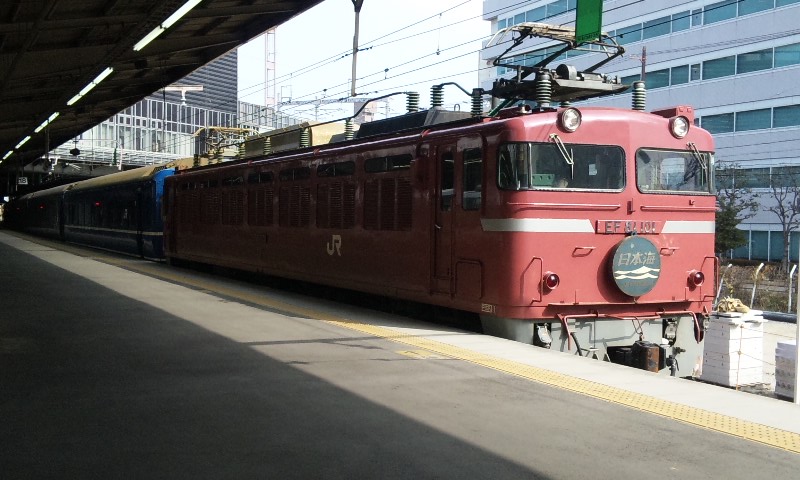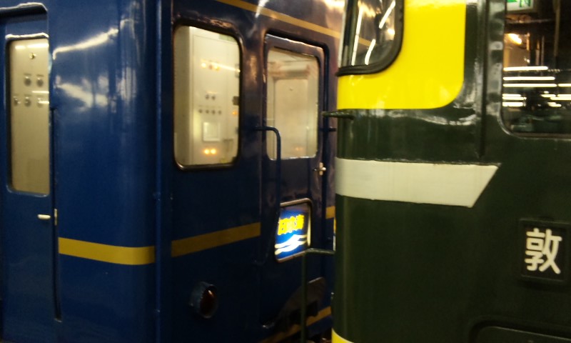 今回は、北陸の特急街道を 走っ“た”電車と、走り“続ける”電車、2列車を特集。 ★北陸路を駆け抜けた「ライチョウ」★ 485系の国鉄色として、一際目立つ存在の「雷鳥」。 古めかしい姿が、とってもカッコイイです!! 「特急 雷鳥 金沢」 白背景に、このフォント。 この方向幕、僕は好きです! なんかこの塗装見てると、外国の古い電車みたいに見えるw 小さいお子様も、釘付け・・・なのかな? 前面を、アップ気味に。 あっという間に京都駅から去ってしまいました・・・ てか、パノラマ型の方の先頭車両、これしか撮ってなかった!! ・・・てことで、大阪で、再戦決定!! ・・・と思いつつ、月日は過ぎる―。 「文殊」の撮影後、新大阪駅に滑り込んできたのは う・・・ 「雷鳥」、しかも非パノラマ・・・>< う・・・、とんだ>< とか言いつつ、 電光掲示板で「雷鳥」の文字を見るや否や、 先頭車両の停止位置に予め待っていた・・・という確信犯だったりする(爆) 雷鳥のテールマーク。 この画像、好きだなぁ、おれ。 後ろはパノラマ車だった・・・>< ・・・こうなったら、意地でも撮ってやる!! ってことで、 やってきました、大阪駅! 今度は、ちゃんと神戸方のホームで待機!! ちゃーんと、撮れましたよ! 「撮れてねぇんだろ・・・」なんて思って方、残念でしたww 環状線の電車と競演・・・ というかカメラ技術のお陰で残念な競演になってしまった(爆) 手ブレがちょっとひどくなってきたので・・・ 三脚などない(というか携帯での撮影・・・)ので、 かばんの上において撮影してみました。 最終的にはこれぐらいの人に。 やっぱり、引退まで1ヶ月前でしたが、人気は高かった・・・!! 雷鳥の記事はこれにて終了・・・ え? 「お前のブログは座席見せてナンボだろ!!」って?? ・・・忘れてました、ハイ。 すんません。 でも、次の電車も座席(というか車内)撮ってませんwwww ★「日本海沿い」を夜中に駆け抜けるデンシャ★ 今のところは「引退」なんてフレーズは耳にした事は無いですが、 昨今のブルトレ引退ラッシュの事を考えると、それは遠くない現実なのかも・・・ と思って、撮りに行きました。 (新大阪駅で「北近畿」待ってたら、偶然、遅れていた「日本海」をキャッチした・・・なんてことはヒミツ) いつまで待ってても動き出す気配なし・・・ 1時間以上遅れていたこの列車、今考えても、何かあったのでしょうかね? 扉と方向幕をセットで。 左手に、見にくいですが、タンゴエクスプローラーが止まっていて、 実は競演を果たしていたりもしますw やがて動き出し、新大阪駅を後にしていきました・・・ 後日・・・ 大阪駅で、トワイライトに充当されるEF81特別色の機関車での日本海を発見! たまに、というかごく稀にですが、特別色での運行もあるようです。 機関車と客車の結合部分。 テールマーク・・・見にくいか(汗) 同じことしてる方が!!ww 最後に、日本海 青森行き という方向幕を。 というわけで、今回は北陸方面へ走る列車2本をお届けしました! 残り2回を予定しています。 #5は、いよいよお待たせ!の こちらの電車を特集! #6は、今まででアップしていないであろう・・・ このような近郊電車を、「一挙乱れ打ち」公開しようと思っています! どうぞ、お楽しみにお待ち下さい!!