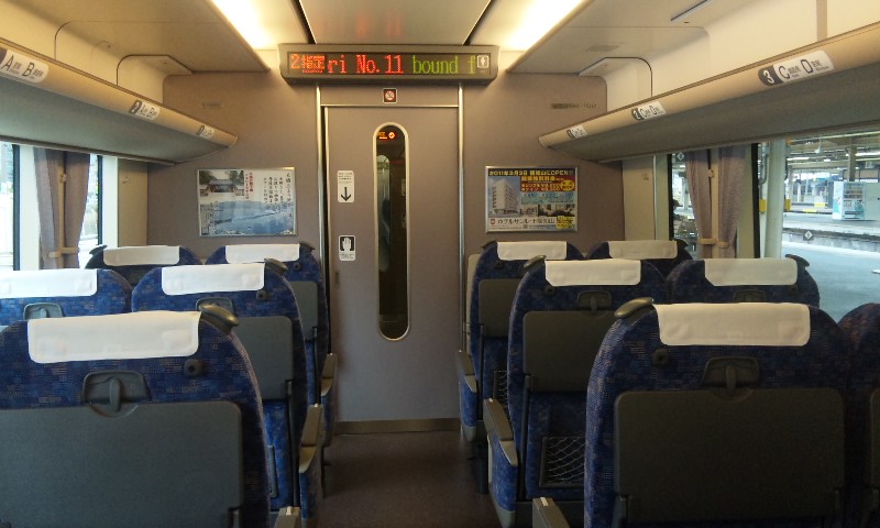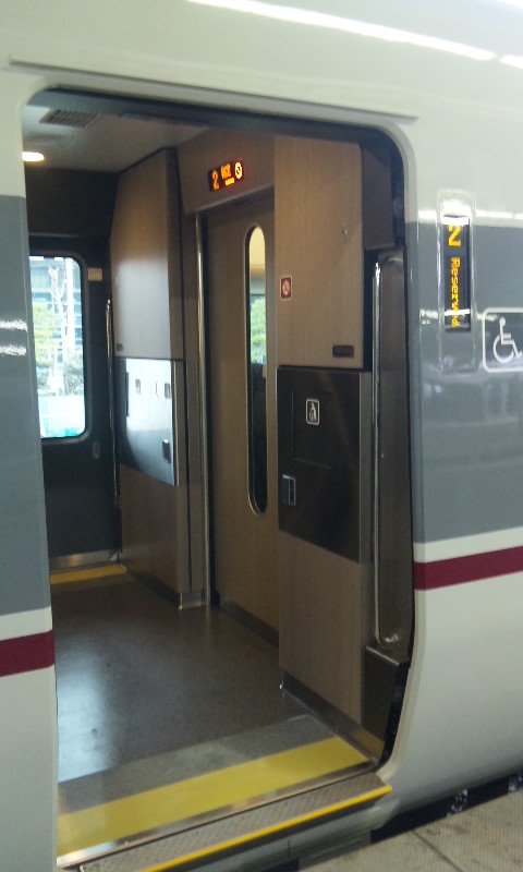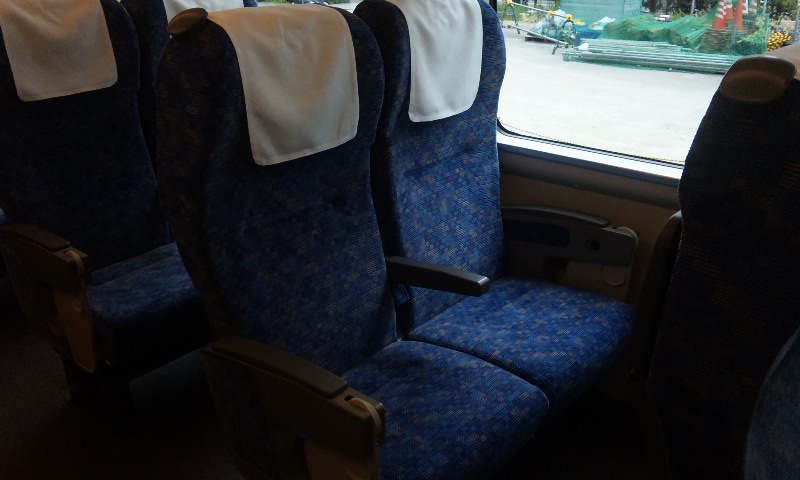 「大阪~」続きです^^ ★トビタツ、「コウノトリ」★ 僕がホームに到着したときには、もう到着していました。 前面です。 この顔、やっぱ見慣れないなぁ・・・^^; もういっちょパチリ。 「こうのとり 福知山」 と、後姿をパチリ。 乗降口~デッキ部分。 新型車両といえども、683系(4000番台)に準じたつくりになっています。 こちらが普通車の車内。 今回撮影した電車は、「こうのとり11号」。 3両編成(グリーン車無し)の電車だったため、グリーン車の画像は残念ながらありません>< (287系の3両編成で運転される電車は「こうのとり8・11号」の1往復のみ。) 丸みが目に付く座席ですが、新型はまかぜのときもこんな感じでした。 後ろから見るとこんな感じに。 LED式の電光掲示板は文字が大きくなって見やすくなりましたね。 背面テーブルには車両案内などは書かれておらず、シンプルなつくり。 窓、意外と大きいですね(って183とかもそうだった気が^^;) 窓割りは当然あってますが(爆) ちなみに、左下を見てもらうと第2編成だったことが分かります。 なんか地下に謎の生物が出現したみたい(大爆) なんかこの角度からだと、「シュッ」として見えますねw 最後に、電光掲示板と合わせた画像を撮って、撤退w また、グリーン車を撮る機会があれば撮ってきますね^^ てなわけで、第5弾はすんなり終了w #6は最終回って事で、近郊電車一挙公開します! どうぞ、お楽しみに~。
