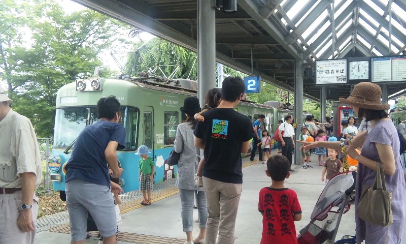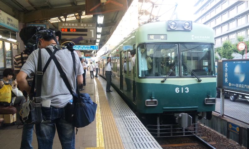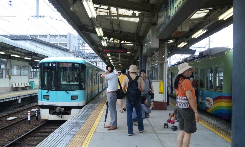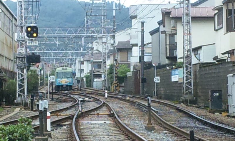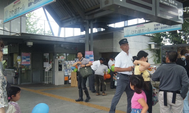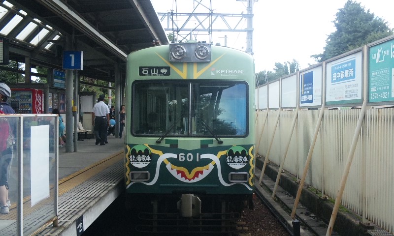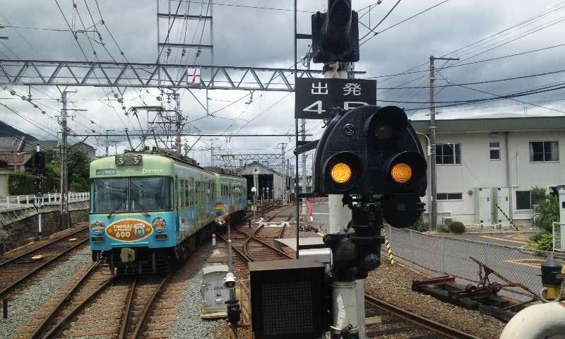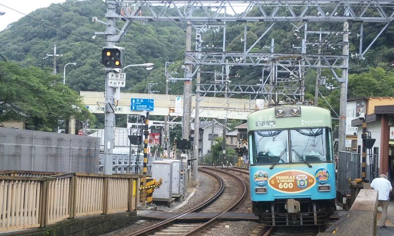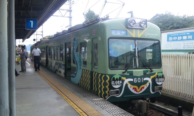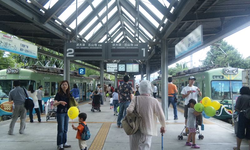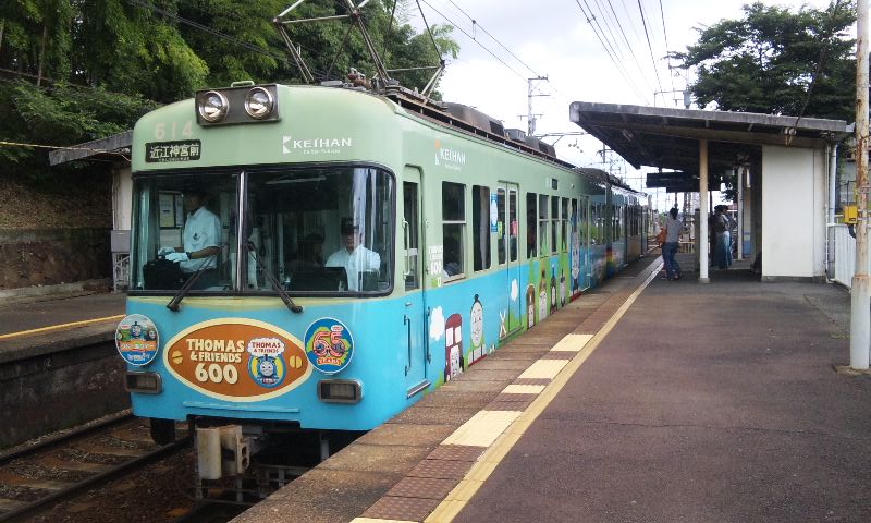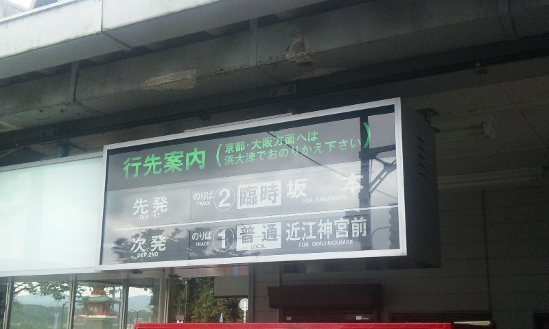 続きです。 浜大津駅が見えてくる直前のカーブ。 ここを走る800系、路面電車で4両編成ですので、とても強烈ですw 浜大津駅で結構のお客さんが下車。 後方展望ですが、それでも鉄道ファンや子連れの方が写真をパシャパシャ。 浜大津を過ぎていくとだいぶ人が少なくなりました。 車内は御覧の通り。 この日はちょうど梅雨の時期で、曇ったり雨が降ったりという不安定な時でしたが、 青空が顔を覗かせました。 雨男、kokucyouをもってしても雨が降らないのは、トーマス号の功績をたたえてか?? 京阪石山の手前ではJRとクロス。 221系が比較的綺麗に撮影できました(笑) 石山寺駅に着きました~。 早速、パタパタ式の発車標。 「臨時」出るんですね、ちょっとびっくりしました。 撮影される方もちらほらいますが、まばらで最終日とは思えない雰囲気。 これでトーマス号は石山寺駅に来るのが最後になるというのに…>< コカコーラの自販機と、撮影されている方が邪魔ですね…(爆) しかし、もうこんな風景も最初で最後でしょう。 (続く…)
