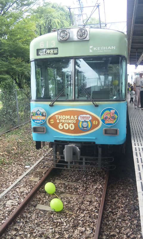 × [PR]上記の広告は3ヶ月以上新規記事投稿のないブログに表示されています。新しい記事を書く事で広告が消えます。 ようやく最終回ですw あーあー、風船が(汗) こういうのがあるから、大変ですよね…>< そういえば、この電光掲示板。 このタイプは、浜大津駅と坂本駅にしかないタイプです。 簡易型は、 皇子山・京阪膳所(石山寺方面ホームのみ)・京阪石山・四宮・京阪山科 の各駅においてあります。 後、いまどき珍しいパタパタ式は石山寺駅に(詳しくはこちらの記事で)。 恐らくですが、京阪唯一のものになってしまいました。 龍馬電車と入れ替わってやってきたのは619F(619-620)。 600形のラストナンバーですね、龍馬電車・トーマスと来ればやはり地味…>< これに乗って、穴太で来てみました。 なんか田舎だなぁ(苦笑) 石山寺方からやってきましたのは709F(709-710)。 こちらも700形のラストナンバーですね。 トーマス電車が入線してきました。 これで泣いても笑っても…“ラストラン”です。 近江神宮前駅に着くと、親子が大多数…! 鉄道ファンは少数派でして、やぱり子供さんに大人気なんですねぇ。 トーマス号が車庫へと引き上げます。 子供さんの「バイバーイ」という声がトーマス号には聞こえたでしょうか…? どんどんと遠ざかり… 車庫の中に入っていきました…。 (因みにこの画像、800系・ビール電車・トーマス・80形と 豪華ラインナップでとても貴重な画像ではないかなと思いますw) … 数日後。 昨日の画像です。 普通の塗装に戻って、普通に走っていました。 やっぱりちょっと寂しいものです>< (完!) PR ラストランを終えてから、もう2週間以上たちましたが… 相変わらず、お子様に大人気! でも、さっきの609Fみたいに人気ナシ!よりましですよね^^; 駅員さん達は笑顔! 京阪の社員さんは、笑顔で色んな事をこなされてる方が多い気がします。 JRさんは、そんな光景見たことがないような… 風船を配っていらっしゃいますが、多すぎません?と突っ込んでみたりw では、横から見た、 トーマス号のラッピングを御覧ください^^ 次でラスト、ちょっとだけ続きます~。 (続く…)